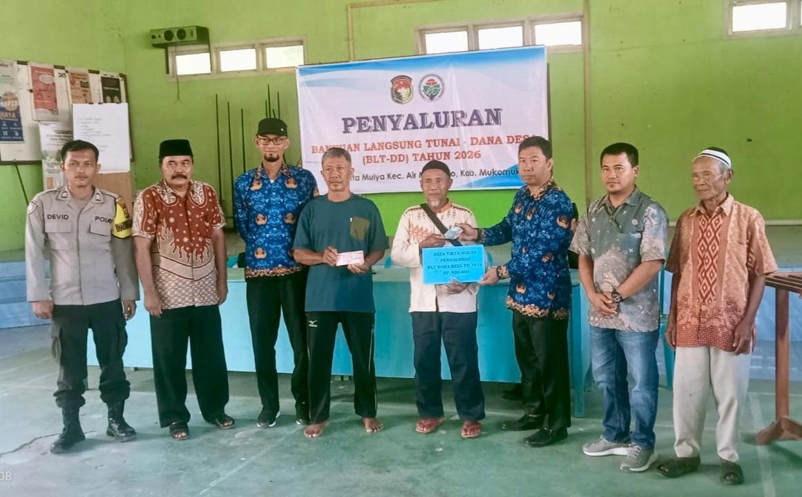 Mukomuko – 2/4/2026, Pemerintah Desa (Pemdes) Tirta Mulya, Kecamatan Air Manjuto, Kabupaten Mukomuko, sukses menyalurkan Bantuan Langsung Tunai Dana Desa (BLT-DD) tahap I kepada masyarakat, pada Kamis, 2 April 2026.