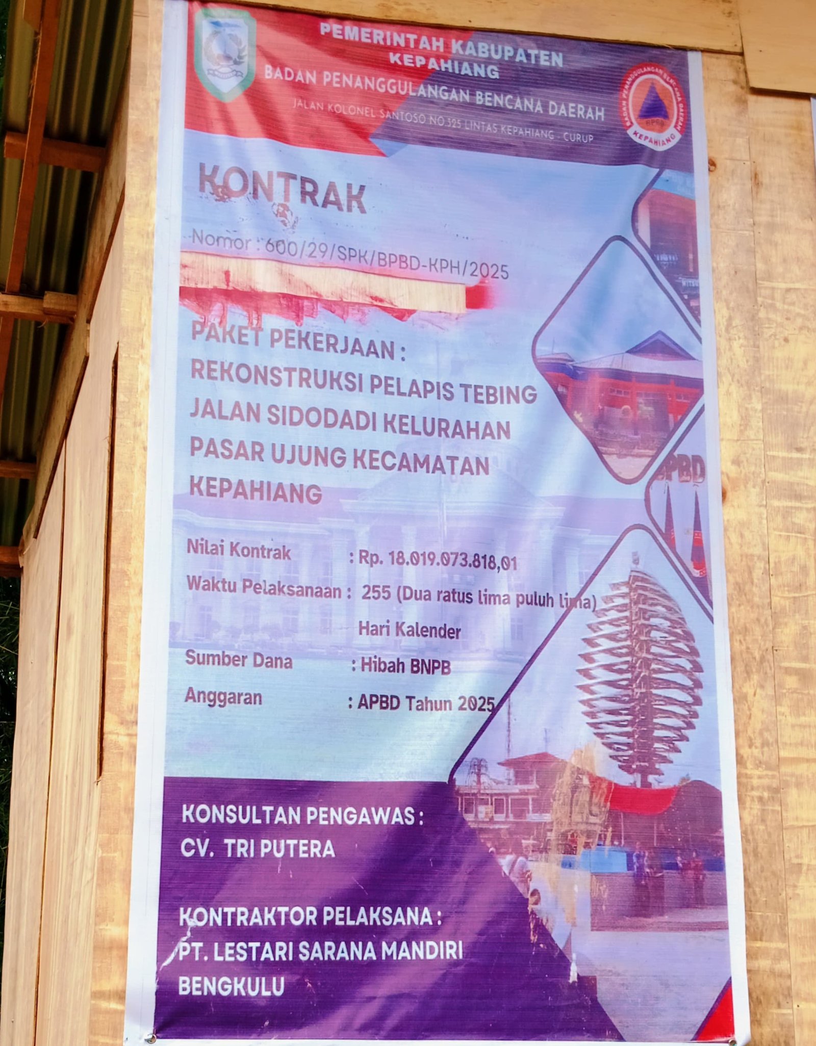 Proyek ini didanai melalui hibah dari Badan Nasional Penanggulangan Bencana (BNPB) dengan alokasi anggaran dari APBD Tahun Anggaran 2025 senilai lebih dari Rp 18 miliar.